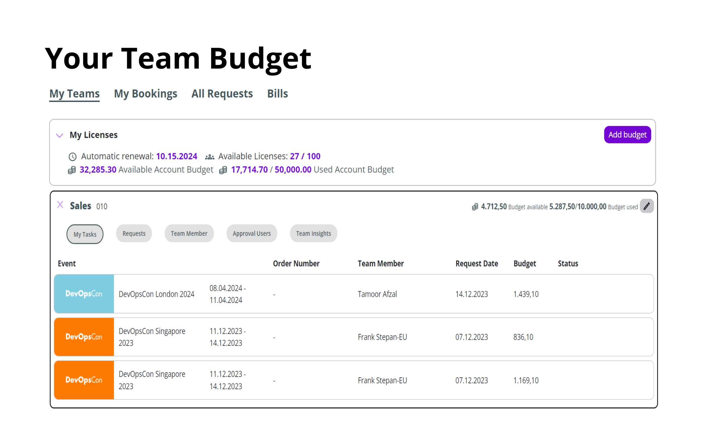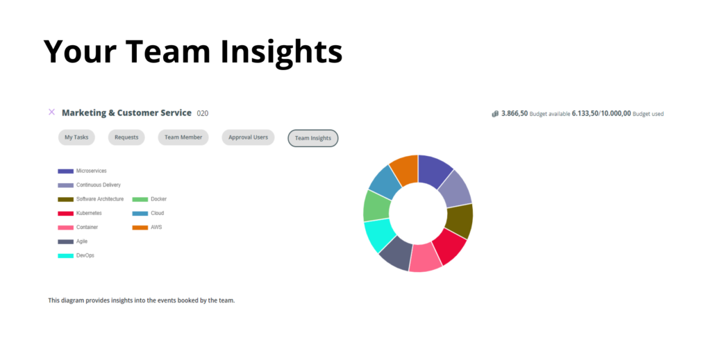 Managing your employee budget has never been easier. Easily distribute budget to your teams and support the individual promotion of strengths. Improve targeted professional and technical skills in your team.